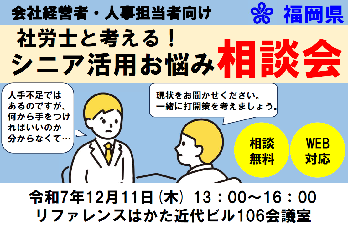 12月11日 シニアのためのしごと相談セミナーを宗像市で開催します